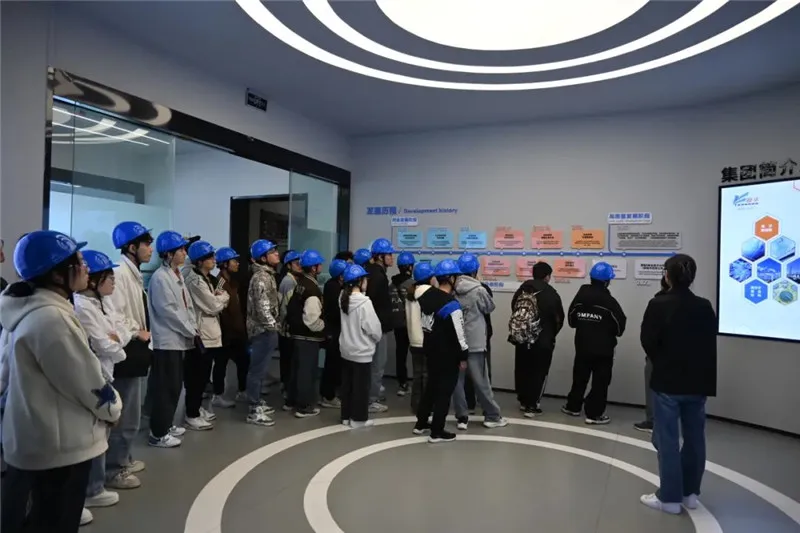 在公司相关部门负责人带领下,来访师生先后参观了生产基地、集团展厅、创新中心等地,详细了解公司发展历程、核心产品、科研实力、资质荣誉等情况。期间,技术骨干与同学们就生产工艺流程、原理等方面进行详尽解答,让同学们对公司有了更直观的了解和认识。