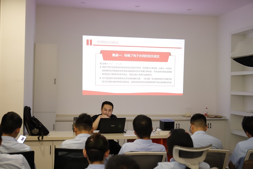 活动中,宋律师结合实际案例就签订合同过程中会遇到哪些法律问题、 新增加民法典的相关内容、 在工作和生活中遇到的法律问题等与员工生活关联密切的法律知识,进行了深入细致的讲解。通过生动的案例、通俗易懂的语言,为企业员工普及法律知识。