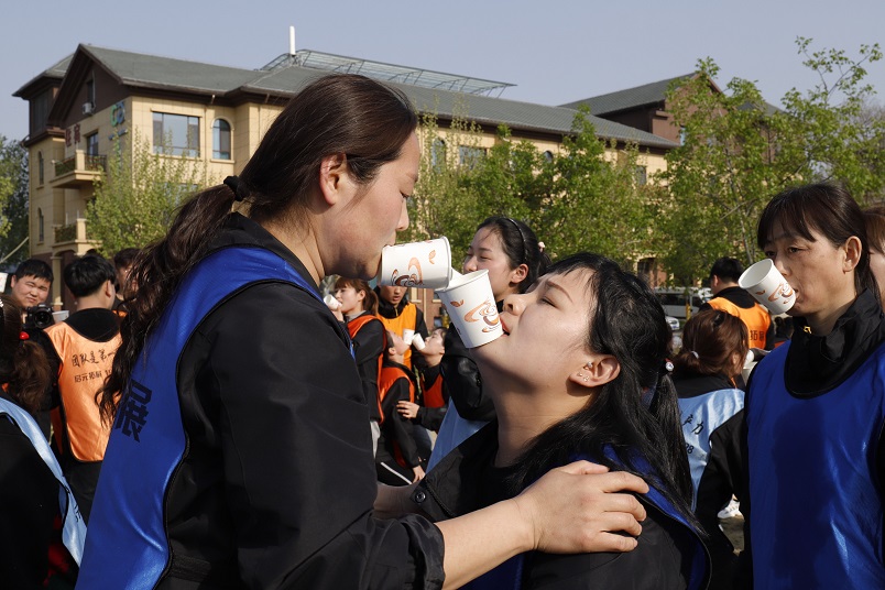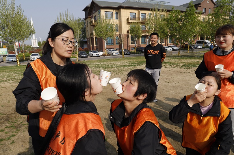 趣味横生的团队纸杯传水活动