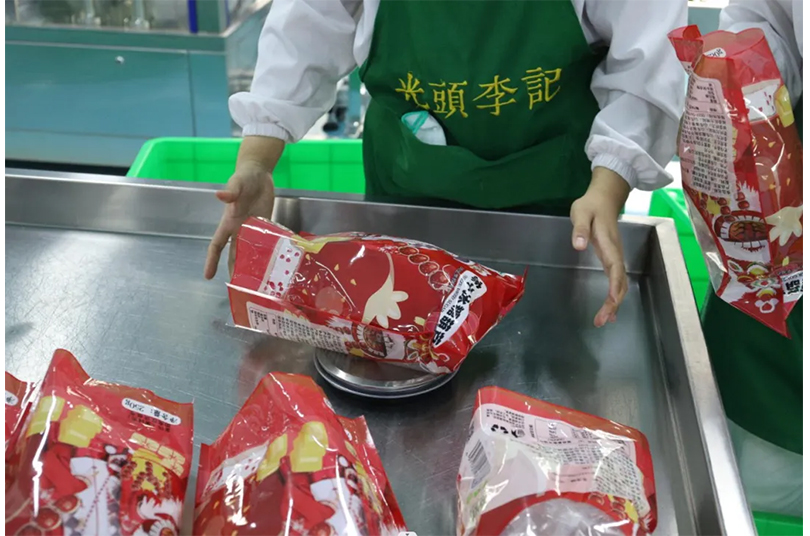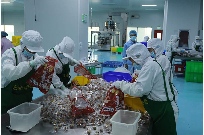 每个组紧张有序的分装着冻干糖葫芦,再由封口人员进行封口环节比试。