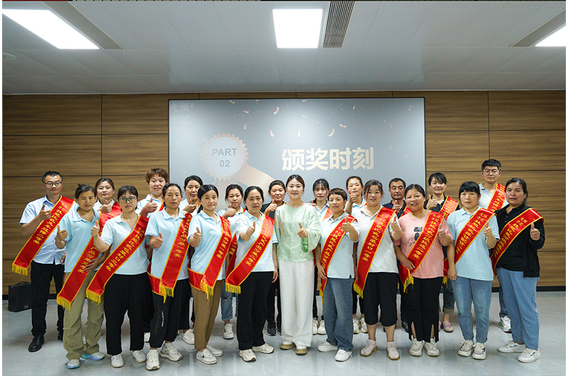 人力资源部金主管逐个为所有获奖人员披上荣誉绶带、颁发荣誉证书,同时递上精美的奖品。