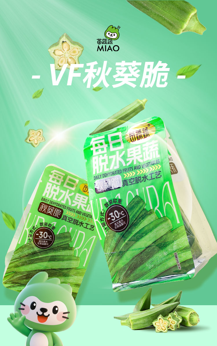 苗蔬蔬手抓包秋葵脆果蔬脆片厂家生产散装称重代理批发代加工出口